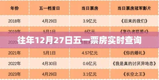 随着电影市场的繁荣和五一假期的临近,人们对于电影的热情愈发高涨,每年的五一档都是电影市场的黄金时期,各大影片争相上映,竞争异常激烈,对于影迷和电影从业者来说,了解往年五一票房情况,对于预测市场趋势、制定策略具有重要意义,本文将带您一起回顾往年12月27日五一票房的实时查询情况。