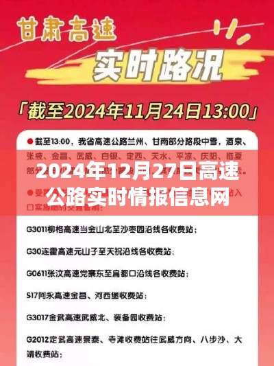 随着交通事业的快速发展,高速公路作为现代交通网络的重要组成部分,其运行状况对于人们的出行和物流运输具有重要影响,本文将通过“高速公路实时情报信息网”为您提供2024年12月27日高速公路的实时情报信息,以便您更好地了解路况,合理安排出行计划。