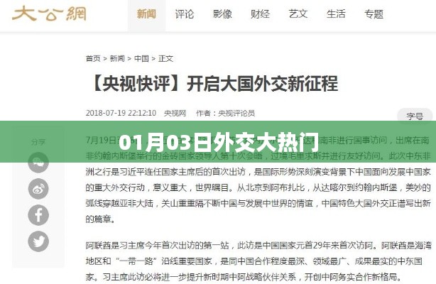 随着全球政治格局的不断演变,外交事务成为各国关注的焦点,在XXXX年1月3日这一天,外交领域出现了许多备受瞩目的热门话题,本文将对这一天的外交大热门进行梳理和分析,探讨其背后的原因及可能产生的影响。