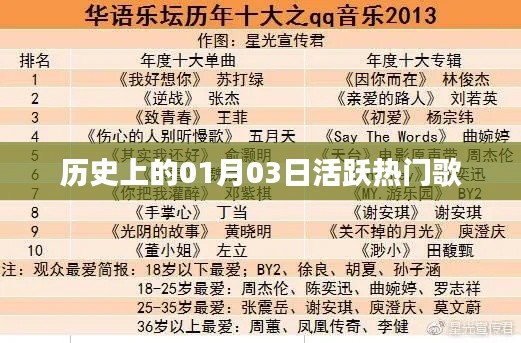回溯历史的长河,每一年的第一个月第三天都承载着时代的记忆和人们的情感,这一天,不仅是日历上的一个标记,更是音乐历史中许多重要时刻的见证者,本文将带您领略那些在这一天活跃并留下深刻烙印的热门歌曲。
