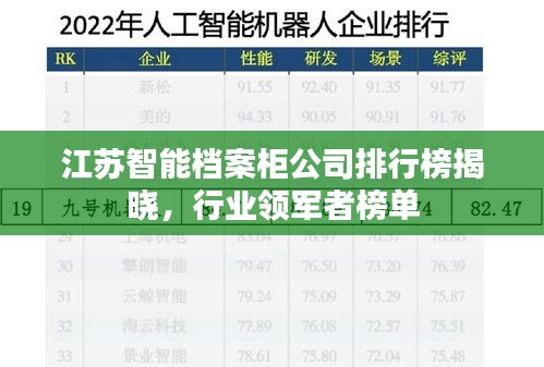 随着信息化时代的到来,智能档案柜作为现代档案管理的重要工具,受到了广泛关注,江苏地区作为我国经济发达的地区之一,智能档案柜市场也呈现出蓬勃的发展态势,本文将为您介绍江苏智能档案柜公司的排名,帮助您了解这一领域的企业格局。