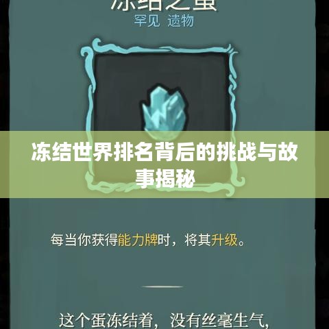 随着全球体育竞技的激烈竞争,各种赛事的排名成为了衡量运动员和团队实力的重要标准,有时由于各种原因,某些特殊的状况如“冻结世界排名”也会发生,本文将探讨这一概念背后的故事以及所面临的挑战。