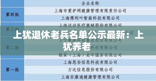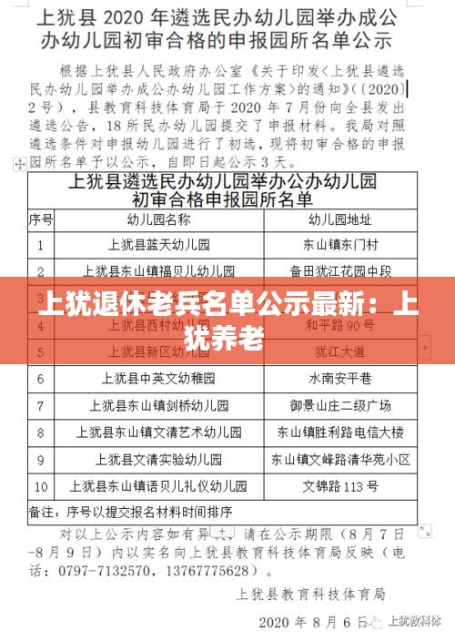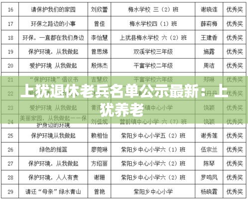 随着我国社会的发展和进步,退役军人的安置工作一直备受关注。近日,上犹县退役军人事务局公示了最新的退休老兵名单,旨在为广大退役军人提供更加清晰、透明的信息。以下是关于此次公示的详细报道。