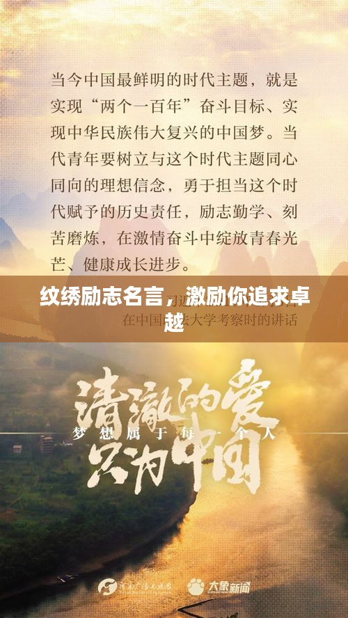 在纹绣的道路上,我们总会遇到困难和挫折,正是这些困难与挫折,让我们更加坚定自己的信念,激发我们内心的力量,励志,就是我们前行的动力,它鼓励我们勇敢面对挑战,不断超越自我,追求更高的目标。