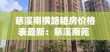 根据最新的市场调查,慈溪南横路的租房价格主要集中在以下几个区间: