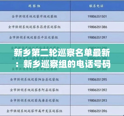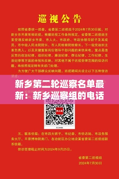近日,新乡市纪委监察委发布了第二轮巡察名单,标志着新乡市巡察工作进入了一个新的阶段。根据公布的信息,本轮巡察将覆盖多个部门,旨在加强对权力的监督,确保党风廉政建设的深入推进。