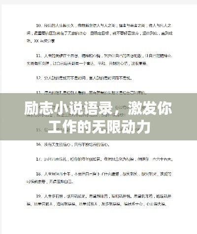在生活的道路上,我们时常需要一些励志的话语来鼓舞自己,激发前进的动力,手写小说语录,正是这样一种力量的凝聚,它们以文字的形式,传递着作者的智慧与情感,激励我们在工作的道路上勇往直前。