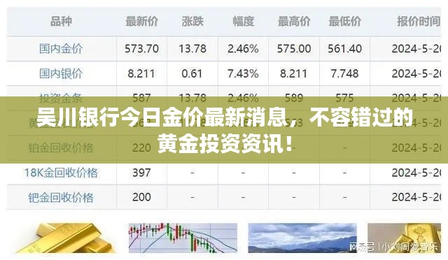 随着全球经济形势的波动,黄金价格一直备受关注,作为投资者或普通消费者,了解黄金价格的最新动态对于决策具有重要意义,吴川银行作为一家知名的金融机构,其金价信息更是备受瞩目,本文将为您带来吴川银行金价的最新消息,并分析当前黄金市场的形势。