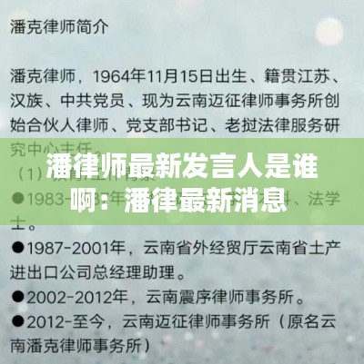 众所周知,潘律师的团队一直以其专业形象著称。然而,随着业务的发展和团队规模的扩大,发言人的人选也需要适时调整。据内部人士透露,前发言人因个人原因离开了团队,这导致了发言人位置的空缺。