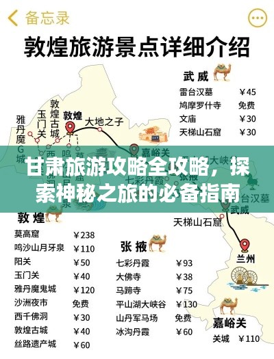 甘肃,这片古老的大地,以其丰富的旅游资源吸引着无数旅行者,你可以领略到历史遗迹的韵味、自然风光的壮美和民俗文化的独特,希望这篇甘肃旅游攻略能为你提供有用的信息,让你在甘肃的旅途中留下美好的回忆。