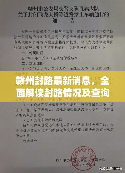 随着城市的发展与交通状况的日益复杂,封路情况在赣州也时有发生,对于广大市民和外界朋友来说,了解赣州封路情况的最新消息显得尤为重要,本文将为您带来最新的赣州封路情况查询消息,以便您及时调整出行计划,确保安全顺利出行。