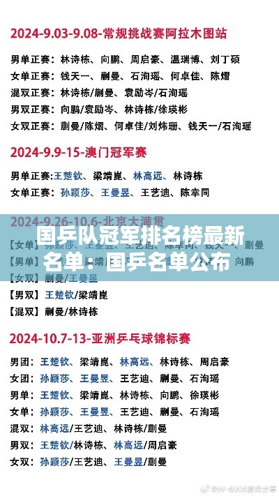 随着国际乒联(ITTF)各项赛事的陆续进行,国乒队的实力再次得到了全球乒乓球爱好者的认可。在刚刚结束的几站国际大赛中,我国乒乓球运动员表现出色,收获颇丰。今天,我们就来揭晓国乒队最新的冠军排名榜。