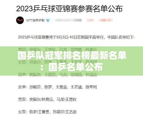 转载请注明来自江西北定建设工程服务体系,本文标题:《国乒队冠军排名榜最新名单:国乒名单公布 》