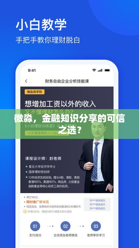 在互联网时代,选择一个靠谱的金融知识分享平台非常重要,微淼作为一个专业的金融知识普及平台,为广大用户提供了优质的学习体验,如果你对金融知识感兴趣,或者想要提高自己的理财能力,那么微淼是一个值得一试的平台,学习过程中还需要保持警惕,理性对待投资,谨慎决策。