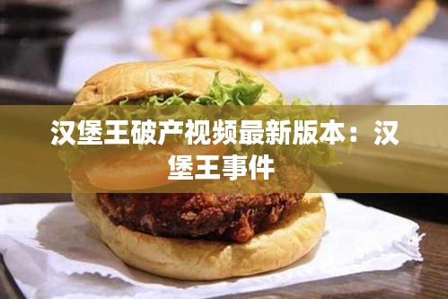 在众多关于汉堡王破产的传闻中,一段名为“汉堡王破产视频”的视频在网络上迅速传播。这段视频据称揭示了汉堡王财务困境的真相,并引发了公众的广泛关注。视频中,一位自称是汉堡王内部人士的男子声称,汉堡王正面临着严重的财务危机,甚至可能面临破产的局面。