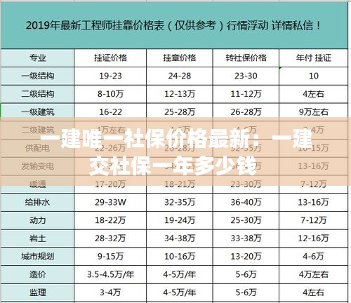 根据最新的政策规定,一建唯一社保的价格由各地区的社保缴费基数和缴费比例共同决定。以下是部分地区一建唯一社保的最新价格参考: