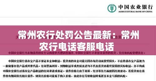 转载请注明来自江西北定建设工程服务体系,本文标题:《常州农行处罚公告最新:常州农行电话客服电话 》