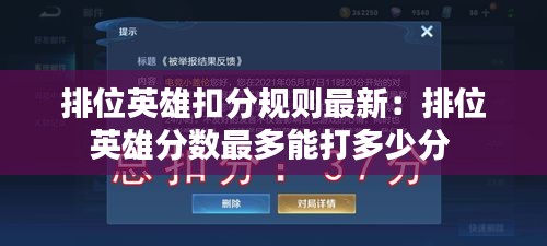 <p>在王者荣耀这款热门的MOBA游戏中,排位赛一直是玩家们追求高段位、提升实力的主要途径。然而,随着游戏的不断更新和玩家行为的多样化,排位赛中的不公平现象也逐渐凸显。为了维护游戏的公平性和健康环境,官方对排位英雄扣分规则进行了多次调整和优化。</p>