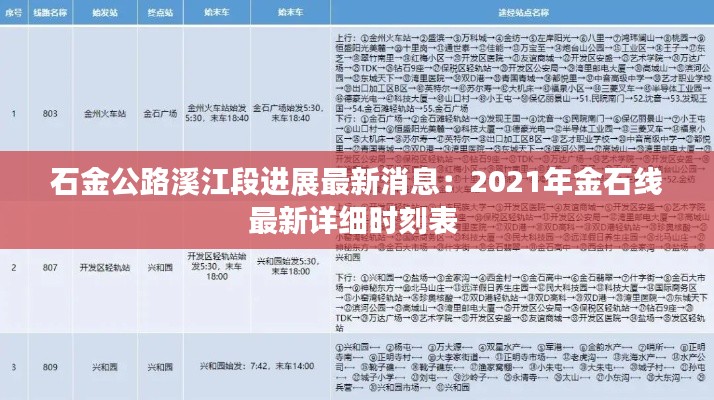 转载请注明来自江西北定建设工程服务体系,本文标题:《石金公路溪江段进展最新消息:2021年金石线最新详细时刻表 》