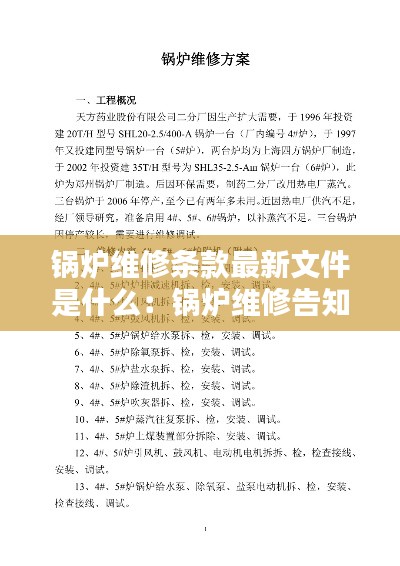 最新版本的锅炉维修条款文件主要包括以下几个方面: