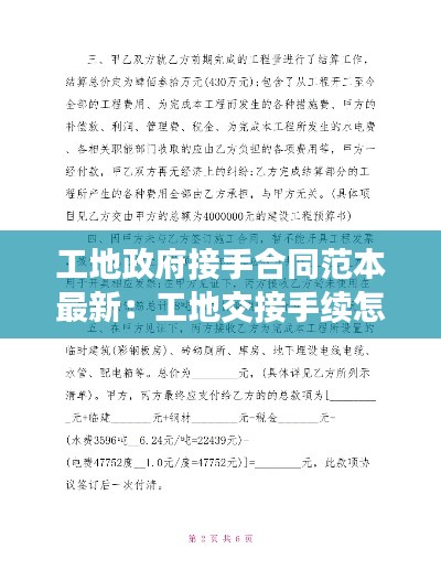 随着我国城市化进程的加快,基础设施建设成为了推动经济发展的重要力量。在众多建设项目中,工地政府接手合同作为一种常见的合作模式,对于保障工程质量和进度具有重要意义。本文将为您介绍最新的工地政府接手合同范本,帮助您更好地了解相关法律法规和合同条款。