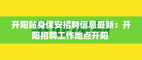 转载请注明来自江西北定建设工程服务体系,本文标题:《开阳贴身保安招聘信息最新:开阳招聘工作地点开阳 》