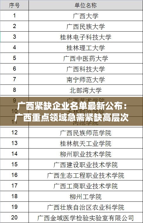 随着广西经济的快速发展,许多行业对人才的需求日益增长。为了满足这些需求,广西壮族自治区人力资源和社会保障厅经过深入调研,结合各行业的发展趋势和人才需求状况,编制了这份最新的紧缺企业名单。