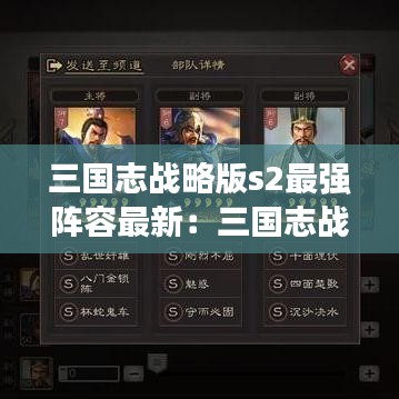 随着《三国志战略版》S2版本的更新,游戏中的最强阵容也在不断演变。本文将为大家带来最新版本中最强阵容的解析,帮助玩家在游戏中取得更好的成绩。