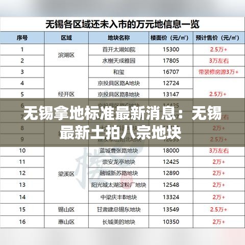 近日,无锡市国土资源局发布了最新的拿地标准,对土地市场产生了重要影响。本文将为您详细介绍无锡拿地标准的最新消息,帮助您了解最新的土地市场动态。