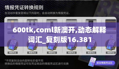 随着澳门特别行政区的不断发展,其政策文件的重要性也日益凸显。政策文件不仅是政府宏观调控的手段,更是促进社会稳定、经济发展、文化繁荣的重要保障。本文将详细阐述"600tk,coml新澳开,动态解释词汇_复刻版16.381"所涉及的内容,并具体分析其在澳门政策制定与发展中的重要作用。