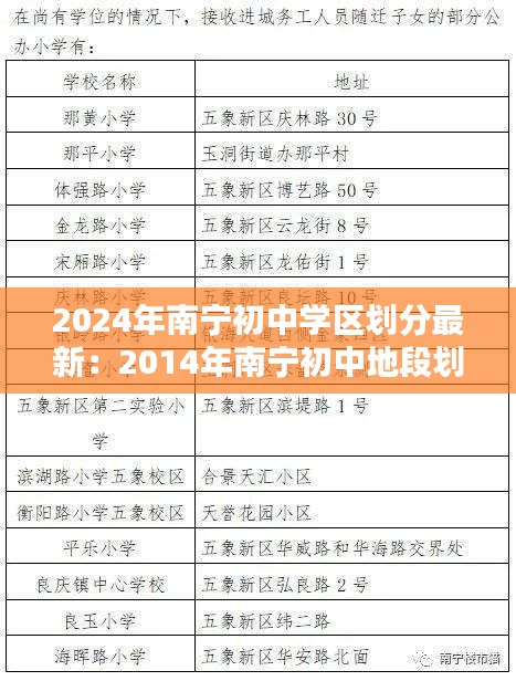 2024年南宁初中学区划分最新解读一、2024年南宁初中学区划分概述