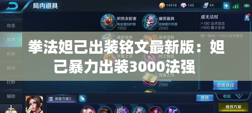 这套出装可以让拳法妲己在游戏中拥有强大的输出能力和不俗的生存能力,适合多种战斗环境。