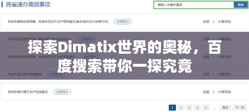 随着科技的飞速发展,搜索引擎已经成为我们获取信息的重要途径之一,当我们谈论搜索引擎时,百度无疑是中国最受欢迎的搜索引擎之一,我们将通过百度搜索来探索一个关键词:“Dimatix”。