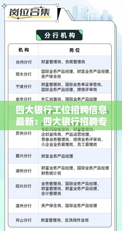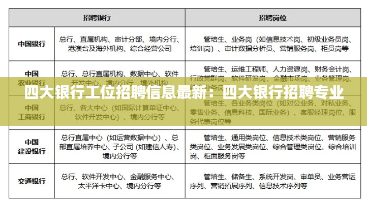 标题:四大银行工位招聘信息最新发布,职位多多,等你来挑战!