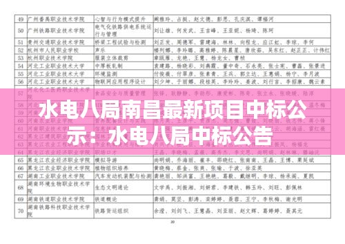 根据江西省公共资源交易网发布的最新中标公示,水电八局凭借其丰富的工程经验、先进的技术实力和良好的企业信誉,成功中标了该工程。中标公示显示,水电八局将承担该项目的施工、监理和后期维护等工作,确保项目按时、按质、按预算完成。