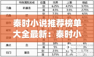 秦时明月,作为中国古典历史中的一段辉煌时期,一直是小说创作的重要题材。随着网络文学的发展,越来越多的秦时小说涌现出来,吸引了大量读者。以下是一份最新的秦时小说推荐榜单,希望对喜欢这一题材的读者有所帮助。