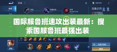 以上就是国际服鲁班七号速攻出装的最新推荐。在实战中,玩家可以根据对手的阵容和自身喜好进行调整。希望这篇攻略能够帮助大家在《王者荣耀》国际服中轻松驾驭鲁班七号,取得更多的胜利!