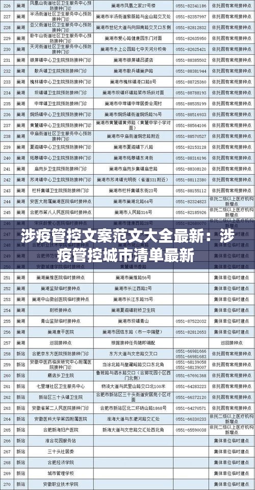 随着新冠病毒疫情的不断发展,我国各地政府采取了严格的涉疫管控措施,以保障人民的生命安全和身体健康。为了帮助广大民众了解最新的管控政策,本文整理了一系列涉疫管控文案范文,供参考学习。