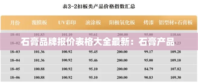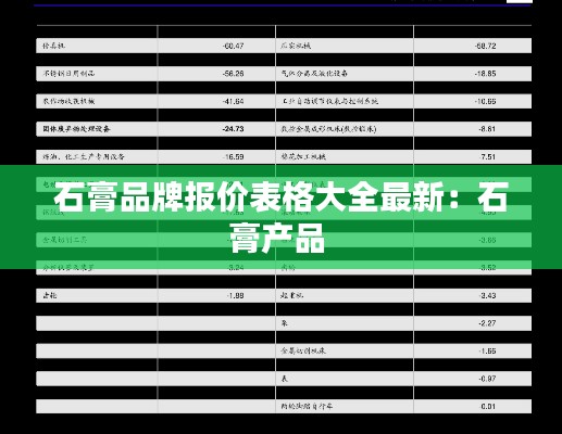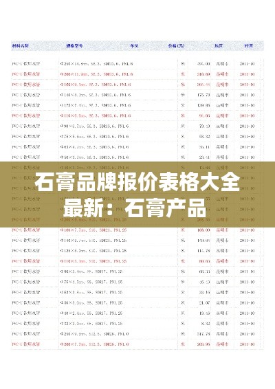 石膏作为一种重要的建筑材料,广泛应用于建筑行业,包括石膏板、石膏线、石膏装饰品等。随着市场的不断发展,石膏品牌众多,各品牌在质量、价格、服务等方面各有特点。本文将为您整理一份石膏品牌报价表格大全,帮助您了解市场上的石膏产品。