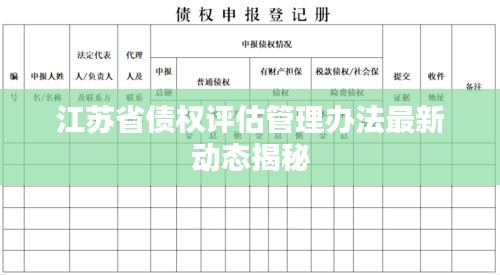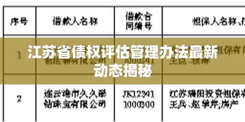 随着江苏省经济的持续发展,金融市场的繁荣也带来了债权评估管理的重要性,近年来,江苏省对于债权评估管理工作的重视程度不断提升,制定了一系列新的政策和措施,本文将围绕“江苏债权评估管理办法最新”这一主题展开。