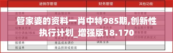 在政策制定的过程中,准确、及时、全面的数据是决策的重要基础。增强版19.170计划包含了对现有"管家婆”公共数据库的进一步完善和升级: