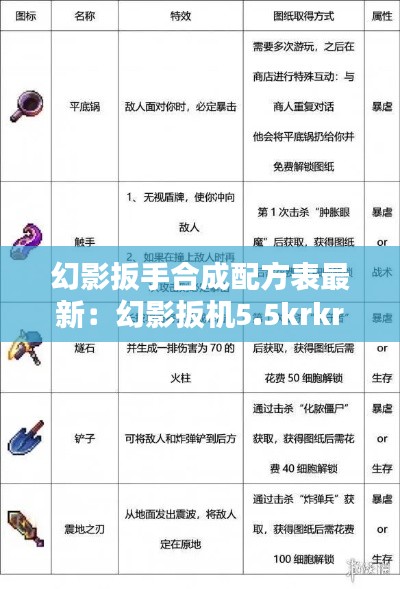 幻影扳手,作为一款在众多游戏中备受玩家喜爱的工具,其合成配方一直是玩家们关注的焦点。随着游戏的不断更新,幻影扳手的合成配方也在不断变化。本文将为您带来最新的幻影扳手合成配方表,帮助您轻松获取这款强大的工具。