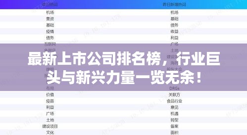 随着全球经济的不断发展和资本市场的日益繁荣,越来越多的公司选择上市,以寻求更大的发展空间和资金支持,最新上市公司排名榜成为了投资者、企业家和行业观察者关注的焦点,本文将对最新的上市公司排名榜进行解读,探讨行业巨头与新兴力量的崛起。