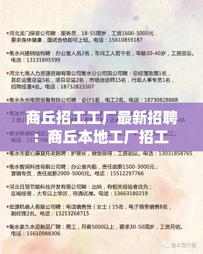 - 登录商丘招工工厂官方网站或关注官方微信公众号,查看最新招聘信息。