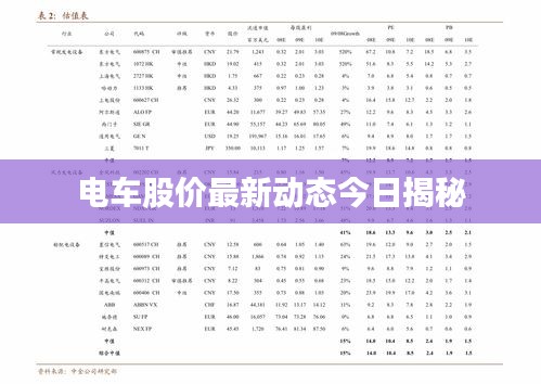 随着科技的不断发展,电动汽车行业日益成为投资者关注的焦点,关于电车股价的最新消息引起了广大投资者的关注,本文将围绕这一主题,探讨电车股价的最新动态以及背后的原因。