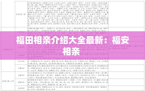 转载请注明来自江西北定建设工程服务体系,本文标题:《福田相亲介绍大全最新:福安相亲 》