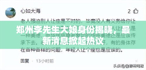一则关于“郑州李先生大娘”的消息在网络上迅速传播,引起了广大网友的关注和热议,关于这位神秘人物的身份以及最新的相关消息,让我们一起来探究一下。