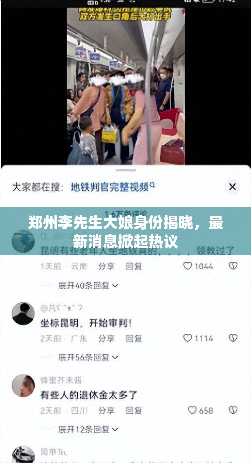 有关“郑州李先生大娘”的最新消息在网络上广泛传播,据消息称,这位大娘可能涉及到了某个社会事件,引发了网友们的广泛关注和讨论,也有关于她个人生活、家庭背景等方面的消息被曝光,引发了大家对这位普通市民的关注。