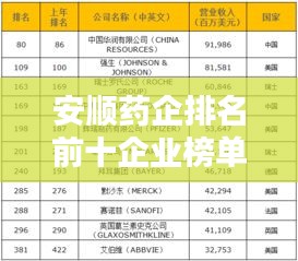 便是安顺药企排名前十的企业,这些企业在医药领域取得了显著的成绩,为安顺市的医药产业发展做出了重要贡献,随着医药行业的不断发展,这些企业将继续发挥重要作用,为人民的健康事业做出更大的贡献。