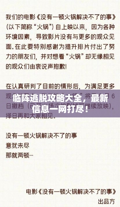 临阵逃脱,这个词汇在军事领域中往往带有一定的负面含义,在某些特定情境下,临阵逃脱并非意味着怯战,而是指在面临不利局面时采取的一种策略性撤退,本文将为你提供关于临阵逃脱的最新信息攻略,助你理解并掌握这一战术的应用。